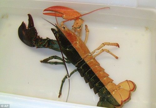 罕见双色龙虾现身 一半黑一半橘色(图)