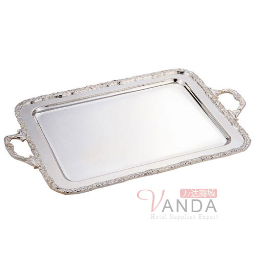 大号玫瑰边方形自助餐盘(银器)