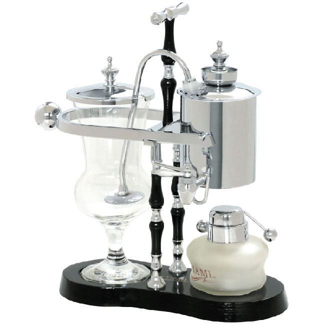 > 皇家比利时壶成为真正冲泡咖啡的壶、以前的咖啡壶需要大量咖啡粉、现在经科学改良后、节约了很多的咖啡粉、而且当水从盛水器流到玻璃杯内、因为跷跷板原理、能停在一半、待煮三十秒后才关火。