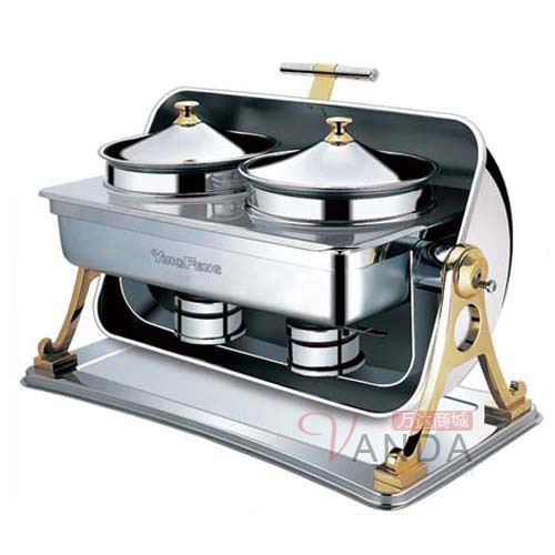 D型镀金全翻盖(双头)豪华宴会汤炉 自助餐汤炉