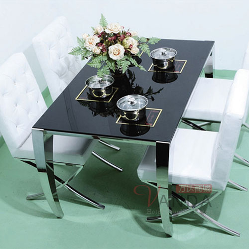 产品说明:不锈钢桌架玻璃桌面 强强联手,实力雄厚,科学设计,品质更有保障。根据多年生产经验,潜心研发可拆卸设计,最大限度的节约运输成本,方便运输与安装,既科学又牢固,而且高档的造型。(注:2.可按客户要求量身订做各类配套餐桌、餐椅;火锅电磁炉与国内实力家具厂家联手合作,现报价不含炉子和椅子。)