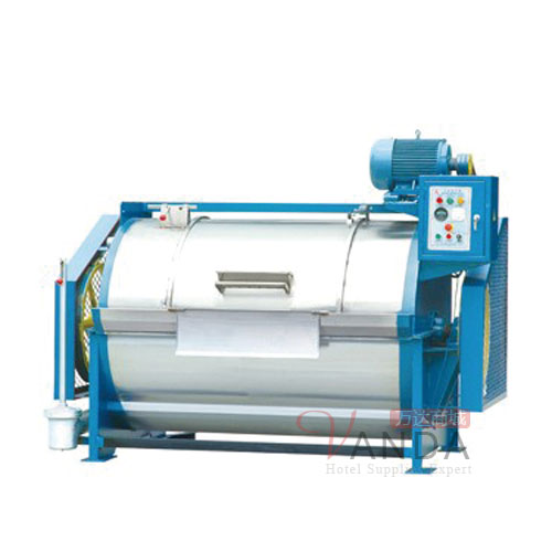 按容量大小分为:10kg、15kg、30kg、50kg、70kg、100kg、150kg、200kg等系列。该设备是滚筒型,内、外壳采用优质不锈钢制作而成,平整光滑、耐腐蚀、不损伤织物。该机由内筒、外筒、电机、支撑总成、传动总成、电器总成组成。结构合理、安装使用方便。工作原理:由顶置电机、三角胶带、带动传动总成,使内筒作正反转运转,通过织物与织物、织物与内筒壁的相互摩擦,达到洗涤效果。机器内置过热、过载装置、定时装置、正反转控制装置。外筒门设有安全装置,若运行中门被打开,机器立即停止运转,确保机器、操作人员的安全。